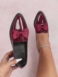 CUCCOO CHICEST Elegant Bowknot Pointed Toe Flat Shoes, Soft Cloud-Like Feel, Charming And Sweet Elegant, Suitable For Commuting, Wine Red Patent PU Leather Ballet Flats, Versatile For Workplace, Casual, Afternoon Tea, And Dates
