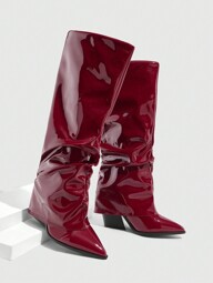CUCCOO SZL Fashionable Burgundy Sexy Pointed Toe Stiletto High Heel Slim Thigh High Boots, Party/Formal Occasion Knee-High Boots For Women For Christmas