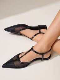 CUCCOO CHICEST Women's Black Mesh Pointed Toe Flats, Elegant Commuter Romantic Minimalist Fashion -On Shoes, Suitable For Work, Date, Afternoon Tea, Halloween, Valentine's Day For Christmas