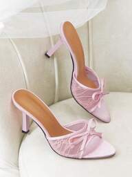 CUCCOO CHICEST Women Stylish High Heel Pumps With Bow Accent, Pointed Toe, Slim Heel, Mule Design, Fashion And Elegant Pink High Heels For Christmas