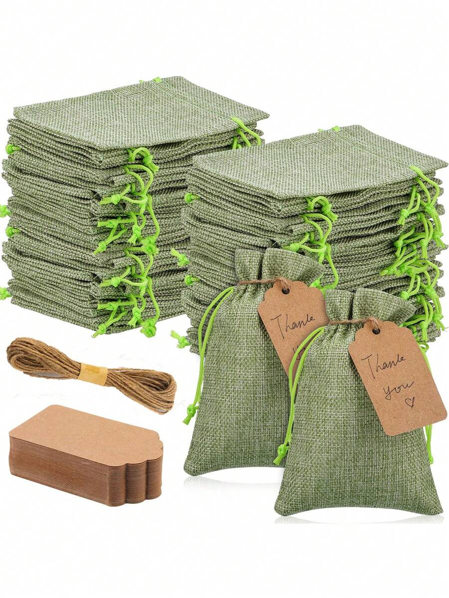 10/20pcs - Green Jute Drawstring Gift Bags, Coarse Jute Fabric Bags, Durable Natural Fiber Pouches, Suitable For Weddings, Baby Showers, Birthdays - Perfect For Candy, Jewelry And Favors, Wedding Favors, Natural Fiber Bags, Durable Gift Bags, Burlap Gift Bags, DIY Wedding Party Crafts, Halloween, Thanksgiving, Christmas (Sage Green, 20pcs = 10 Bags + 10 Tags)