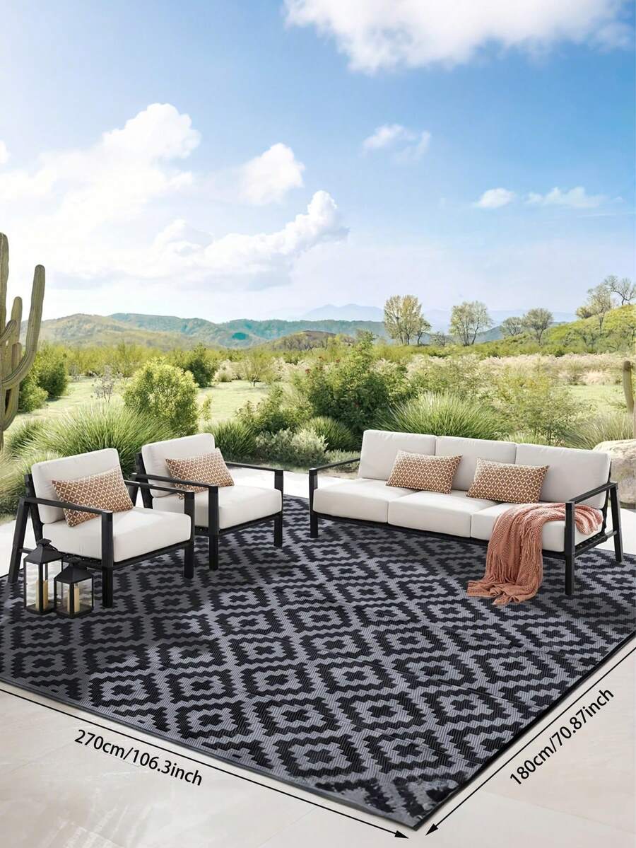 Reversible Waterproof Outdoor Rug, Plastic Straw Patio Camping Mat, Indoor Outdoor RV Carpet Pad, Suitable For Patio, Outdoor Entrance, Backyard, Deck, Bench, Picnic, Camper, Black & White