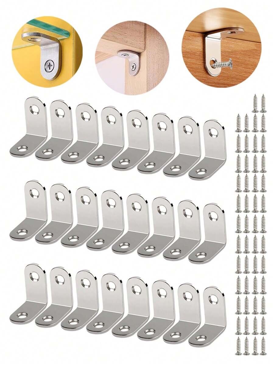 30pcs Heavy-Duty L-Shaped Corner Brackets Stainless Steel Corner Braces - Fit For Cabinets, Furniture, Cupboards, Chairs And Drawers - Includes 10 Brackets And 20 Screws - , Multipurpose Connectors