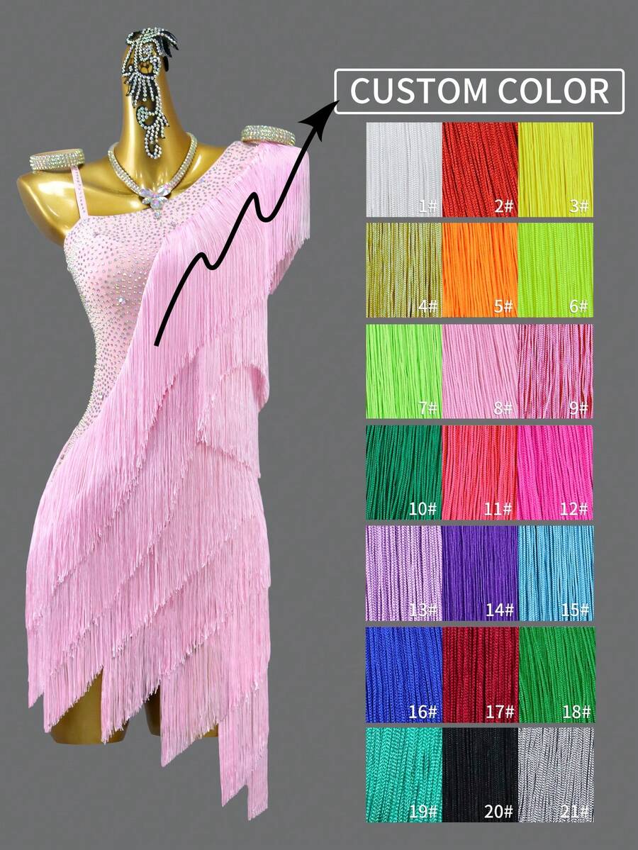 ABC Dancing New Style Latin Dance Dress With Fringe For Women And Girls, Competition Ballroom Dance Performance Sexy Outfit Custom Made For Salsa, Cha Cha Cha Party