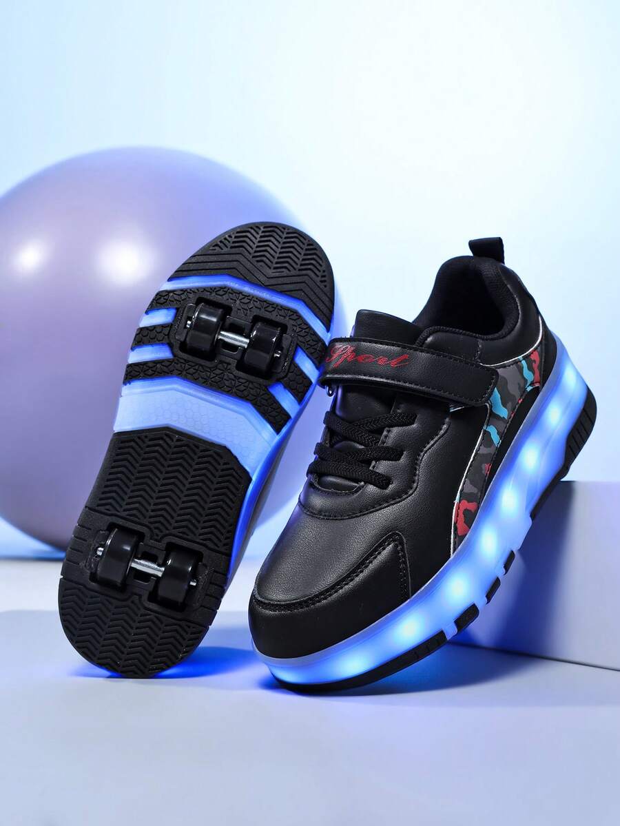Fashionable Light Up Roller Shoes, 4-Wheel 2-In-1 Design, LED Glow Children/Teenager Casual Sports Skate Shoes