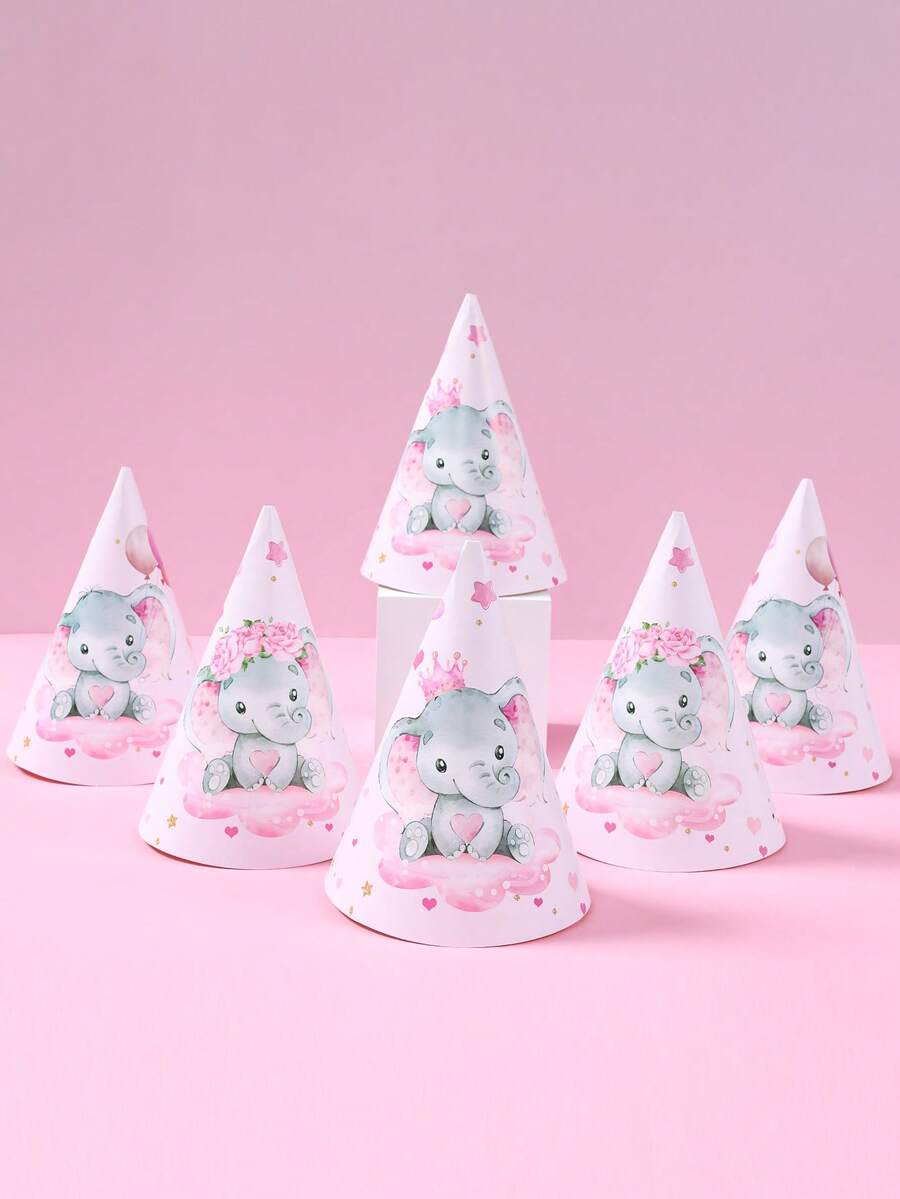 6pcs Pink Elephant Theme Baby Shower Party Paper Hats, Adorable Pink Elephant Pattern 1st Birthday Party Decorative Hats, Gender Reveal Party Accessories, 1st Birthday Gift, Pink Elephant Decor Birthday Hat, Baby Shower Photography Props, Baby Shower Party Favors, Gender Reveal Party Decorations, Popular Pink Elephant Pattern Design