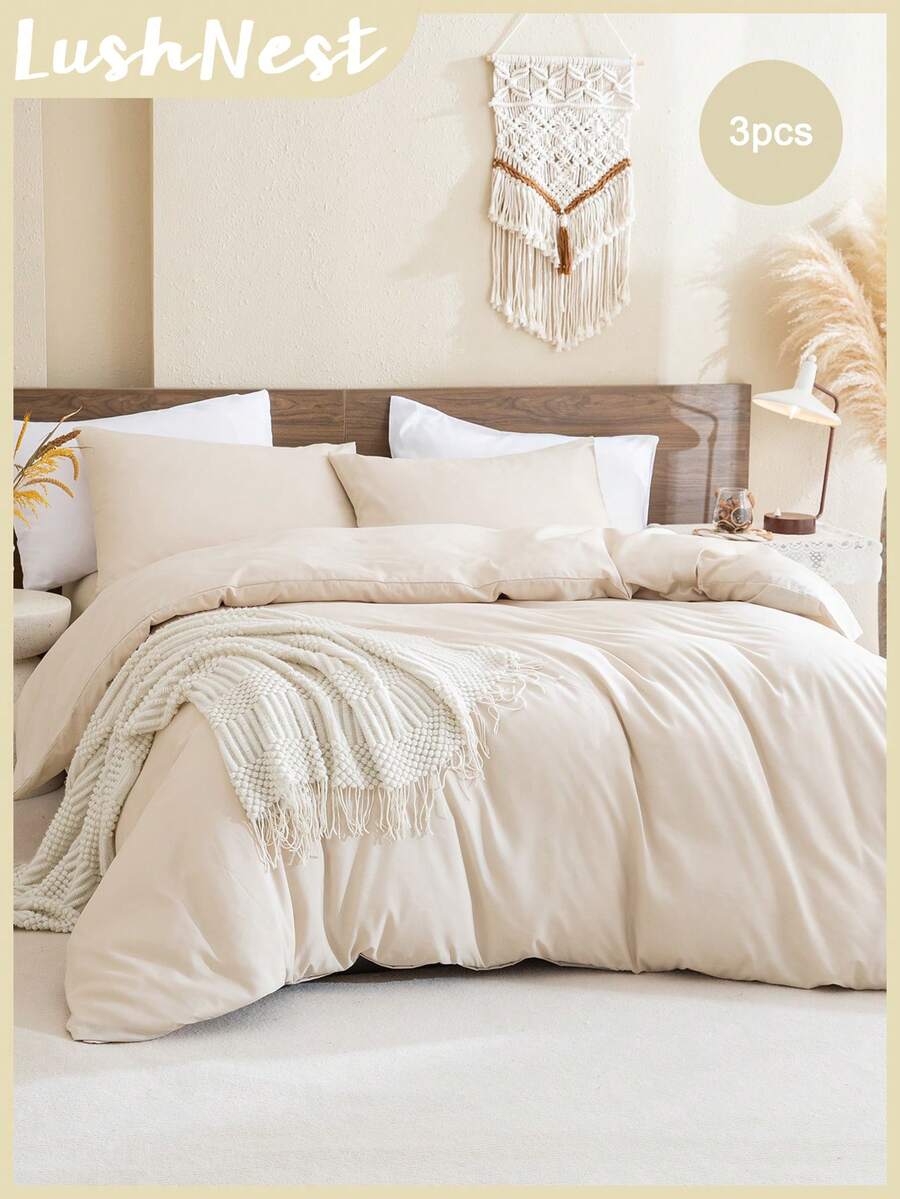 Beige Duvet Cover Set Boho Farmhouse Bedding Set 3 Pieces Beige Comforter Cover Soft Microfiber Minimalist Beige Neutral Comforter Cover For Boys Girls 1 Duvet Cover 2 Pillowcases No Comforter