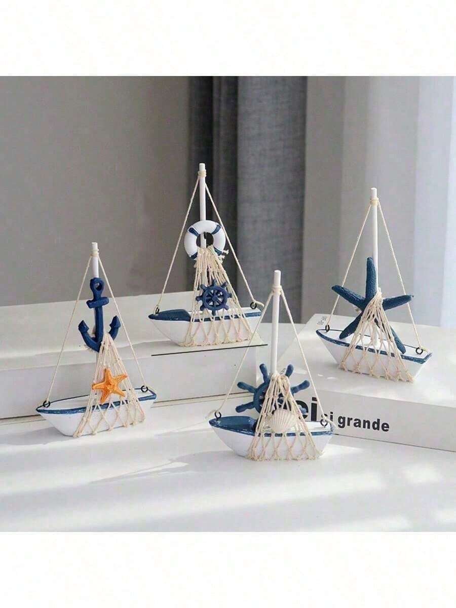 1pc Nautical Themed Decor, Mini Sailboat, Coastal Home Decor, Beach House Decoration, Anchor Rudder Ornament, Rope Sail, Tabletop Decor, Fireplace Mantel Decor, Ocean Theme Decoration, Maritime Decor, Shell Decor, Sailing Boat Ornament Set, Coastal Style Mini Ship Decor, With Anchor, Starfish, Steering Wheel, Suitable For Beach Theme Decor, Bathroom Accessories, Shelves Decoration, Office Desk Accents, Holiday Party Table Centerpiece