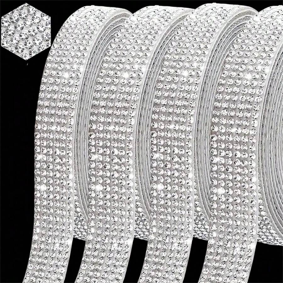 1/3pcs Self-Adhesive Crystal Rhinestone Diamond Ribbon - DIY Diamond Ribbon Stickers With 2 Mm Rhinestones For Arts Crafts,Bling Silver Ribbon Rolls For Phone,Car Decoration