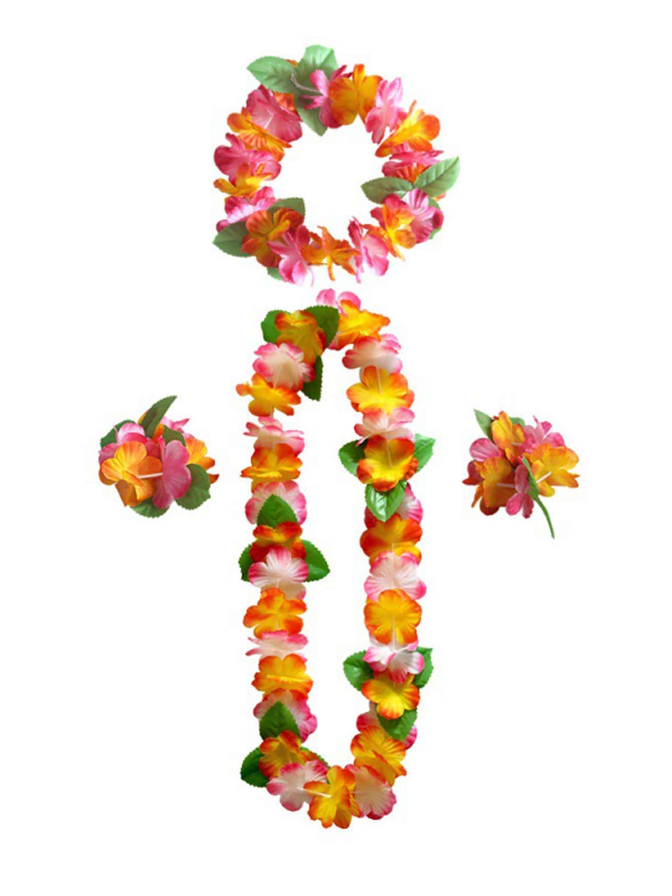 4pcs Plastic Hawaiian Lei Set, Floral Lei Necklace, Headband, Bracelet, For Festivals And Beach Parties(Random Pattern),Christmas