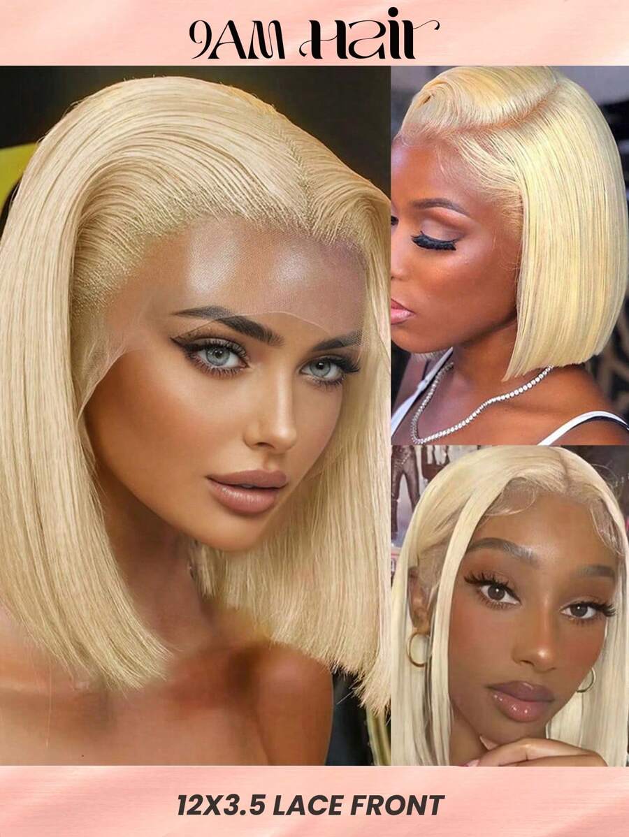 12x3.5 Lace Front Human Hair Wigs For Women Short Straight Bob 613 Blonde Color Transparent Lace All Day Wear