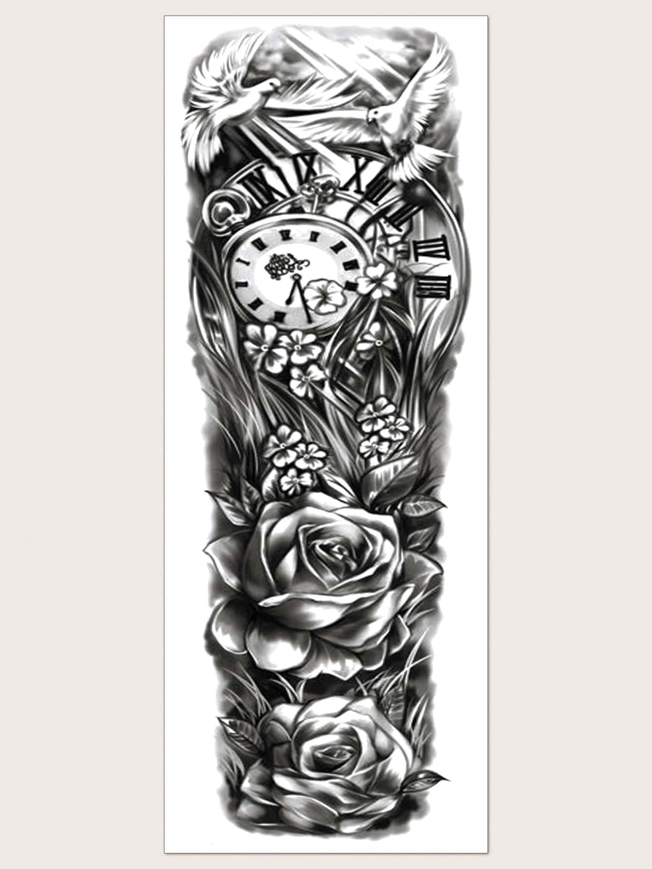 Tattoo Sticker,1 Sheet Large Half Arm Sleeve Flower & Clock Pattern Temporary Tattoos For Men Women Forearm,Flower Fake Tattoo Stickers Adults, Black Realistic Tattoo Flower,For Women and Girls