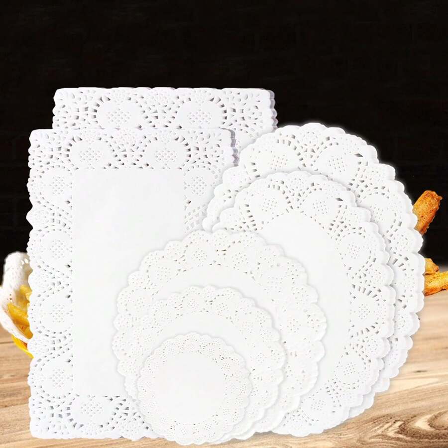 100pcs, White Paper Doilies, Disposable Paper Lace Doilies For Food Decorative Doilies Placemats For Table Wedding Birthday Cakes Desserts Food Decoration - Assorted Sizes (Round Rectangle Oval Heart) Air Fryer Kitchen Air Fryer Liners Air Fryer Paper Airfryer Air Frier