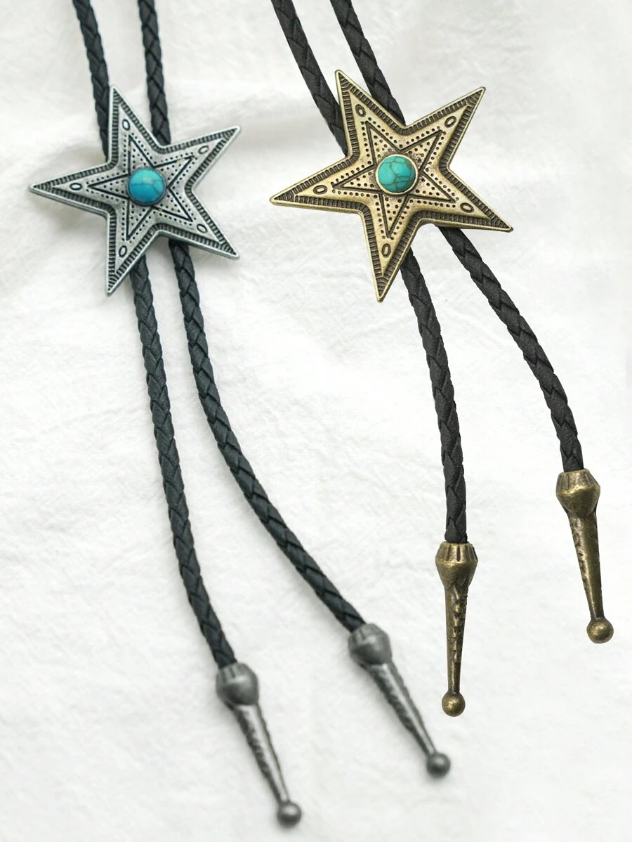 pooting bear 1pc American Western Cowboy Retro Five-Pointed Star Bolo Tie, Fashionable And Individual Style Unisex Buckle Tie Long Necklace Street,School