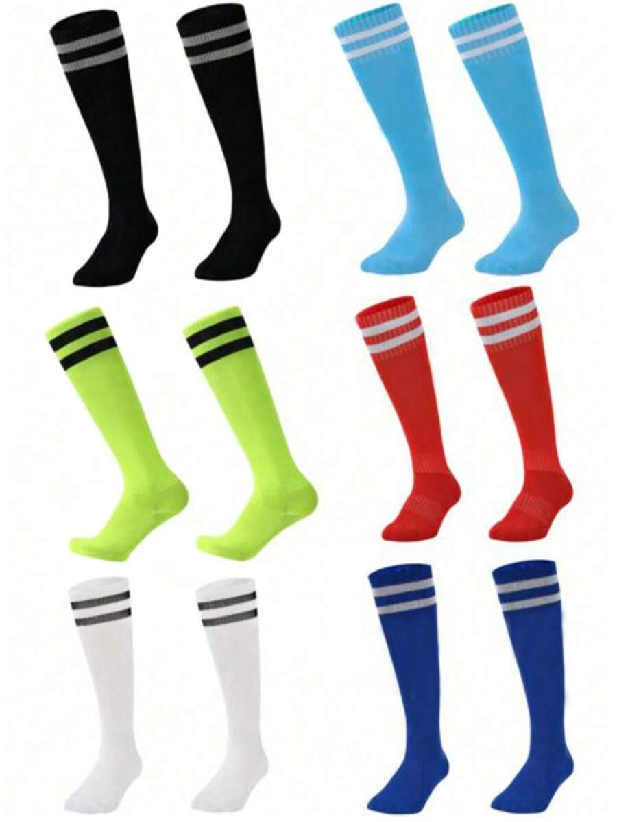 6 Pairs Youth Team Sports Over-The-Knee Socks, Children's Football Socks. Youth & Teen Over-The-Knee Sports Soccer, Gym Socks For Children, Solid Color & Striped, Suitable For Boys & Girls Aged 8-12
