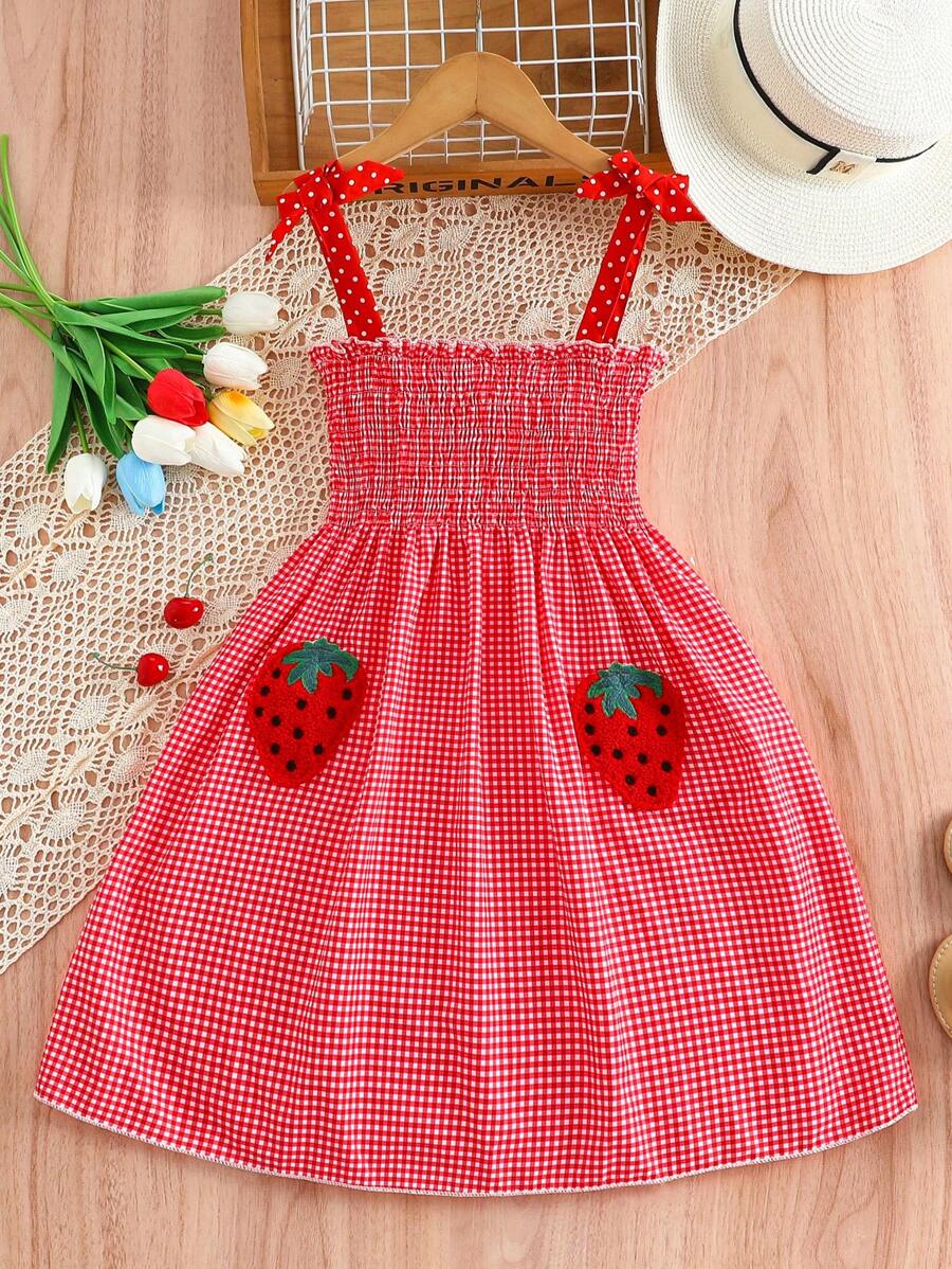Tween Girl Strawberry Velvet Gingham Strap Dress