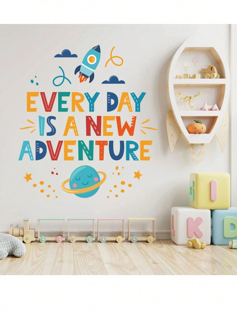 Cartoon Sun, Rocket, Moon, English Family Proverbs Wall Sticker For Kids' Room, Nursery, Living Room Decoration, Stickers, Wall Decal, Vinyl Decal For Home Decorations, Spring Decoration Items Refresh Your Home, Rama Decoration Stickers Gifts Birthday Graduation