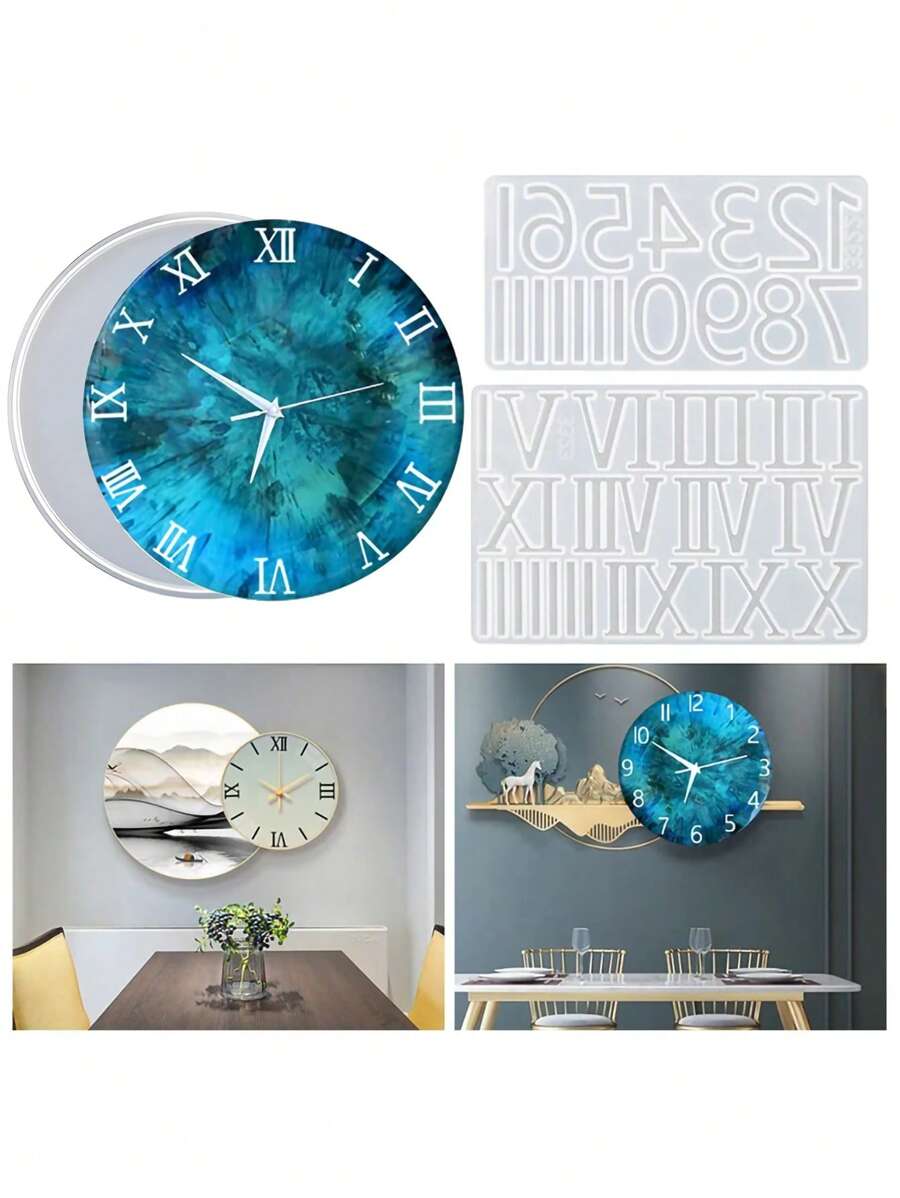 1 Pc Silicone Resin Clock Arabic Numerals Mold, Roman Numerals Wall Hanging Clock Silicone Molds For DIY Art Craft Making Wall Hanging Ornaments Home Decor Handmade