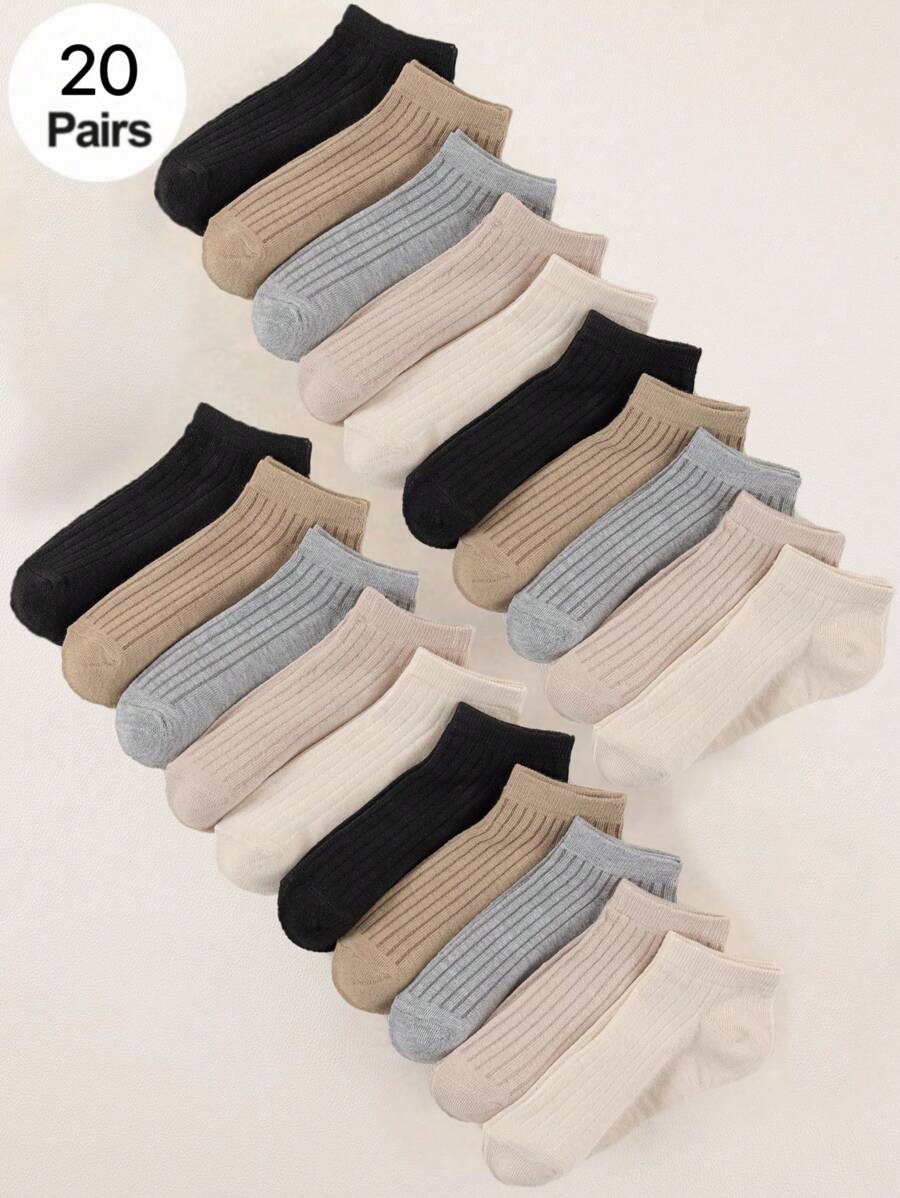 1 Pair/20 Pairs Solid Color Striped Simple Everyday Versatile Skin-Friendly Comfortable Breathable Women Short Socks