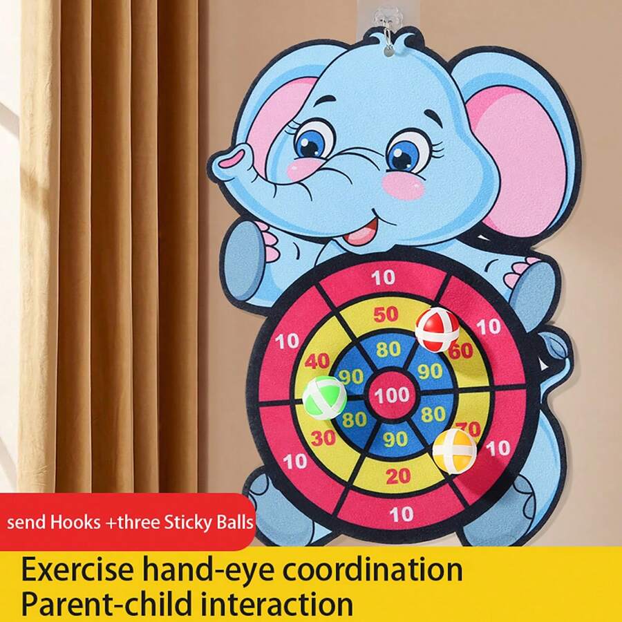 1pc Kids Cartoon Target Throwing Sticky Ball, Fun Party Game For Family Interaction, Gift For Boys, Girls, Christmas, Halloween, Thanksgiving, Birthday - Includes 1 Hook And 3 Sticky Balls