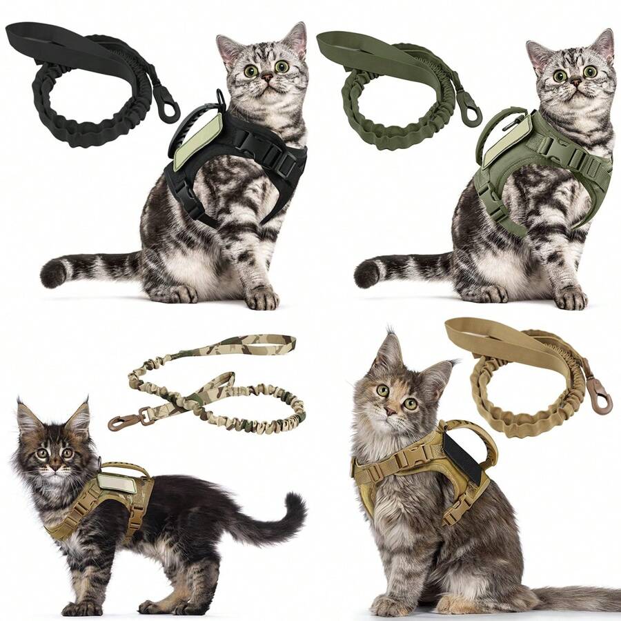 2pcs Tactical Cat Harness And Leash Set, Adjustable Soft Mesh Cat Vest Harness And Leash For Walking Cats, With Rubber Handle For Easy Control