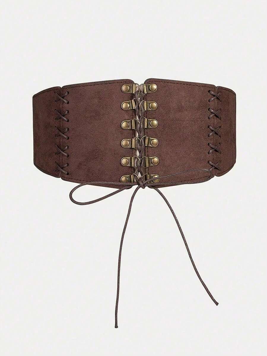 1pc Women's Vintage Style Coffee Brown Lace-Up Buckle Waist Cincher, Suitable For Halloween Party Or Daily Wear