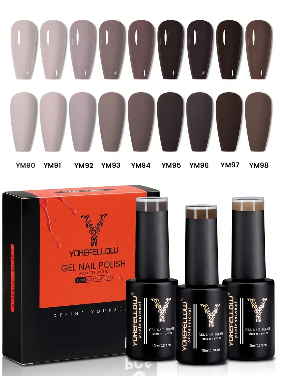1 Set Of 10ml YOKEFELLOW 3-Color Brown Gel Nail Polish Set, Autumn/Winter Semi-Permanent Acrylic Nail Polish Set, Removable UV/LED, Gift For Women, 2024 New Arrival