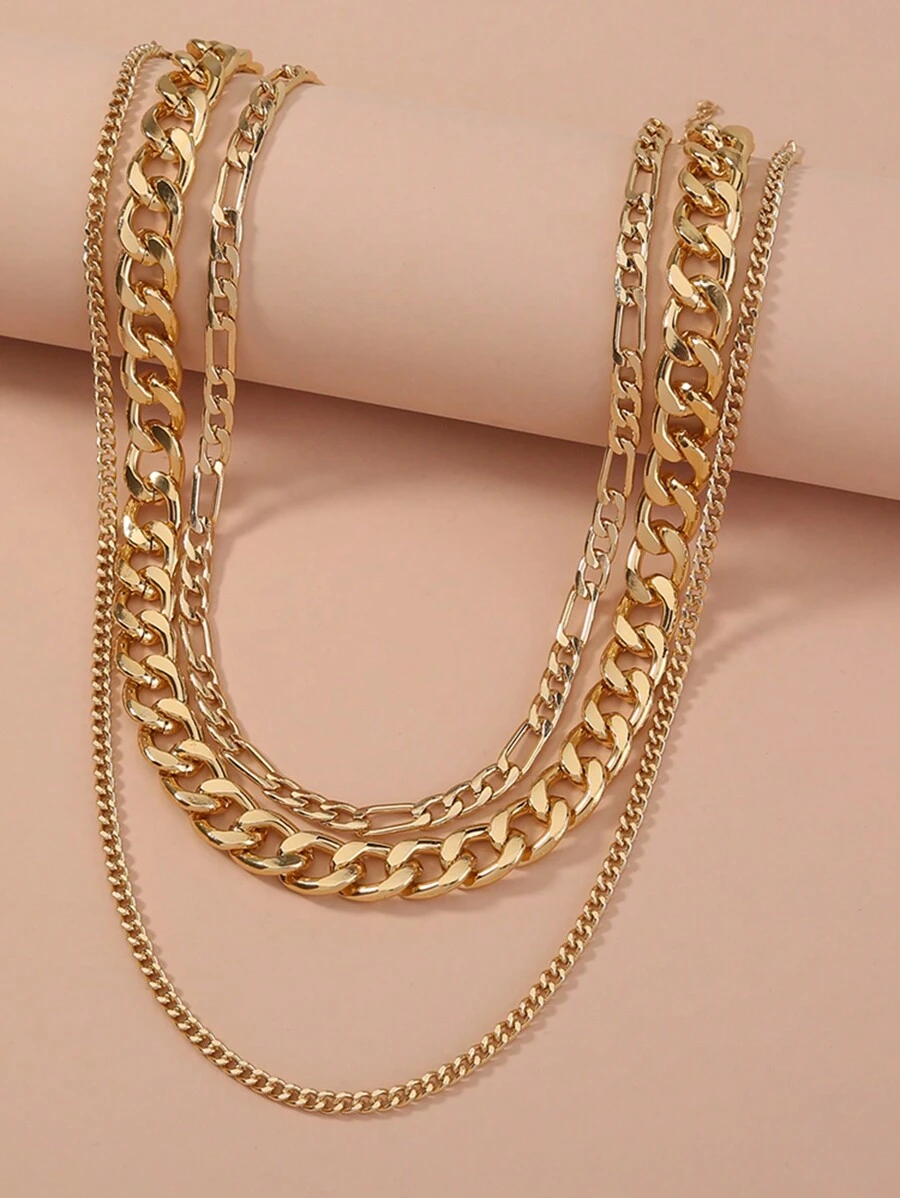 3pcs/Set Fashion Minimalist Multi-Layer Gold Chain Necklace Pendant (Random Quantity Of Chain Rings)