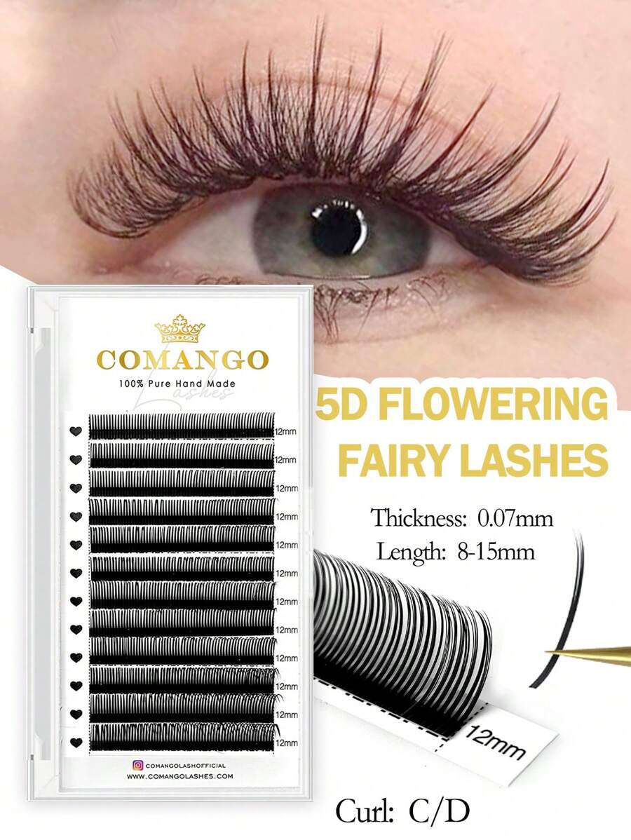 CoMango 5D Flora Lashes 0.07mm Easy Fan Eyelash Extensions Wholesales Premade Volume 12 Rows Natural Soft Lasheslash Clusters,Eyelash Clusters,Individual Eyelashes,Lashes,Fake Lashes