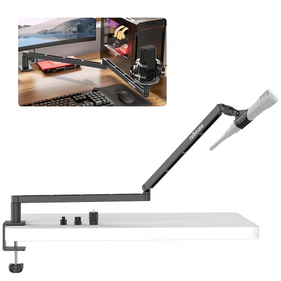 Low Profile Microphone Boom Arm, Rubesee Adjustable Stick Mic Arm Stand With Desk Mount Clamp/Screw Adapter/Microphone Clip, Fully Rotatable Aluminum Low Arm For Podcast/Streaming/Gaming/Office