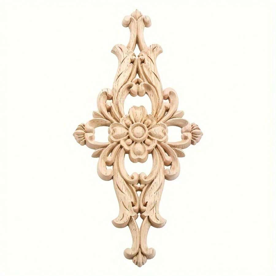 1pc Wood-Carved Furniture Appliques Onlays, Unpainted Center Carving Decal For Door Wall Ceiling Cabinet Dresser Decoration