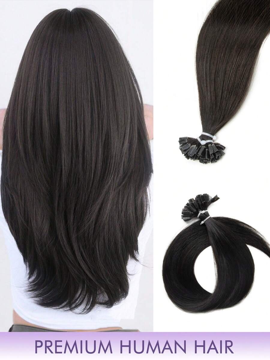 50pcs K-Tip & V-Tip Hair Extensions, Real Human Hair, Keratin Coated, 1B Natural Black, 14-22 Inch Straight, K-Tip Keratin Hair Extensions, Invisible V-Tip Hair Extensions, Christmas