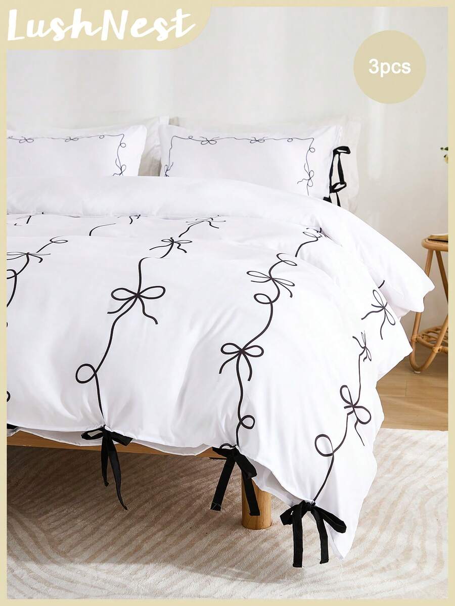 3pcs/Set Wave Bowknot Bedding Set, Suitable For Bedroom In All Seasons
