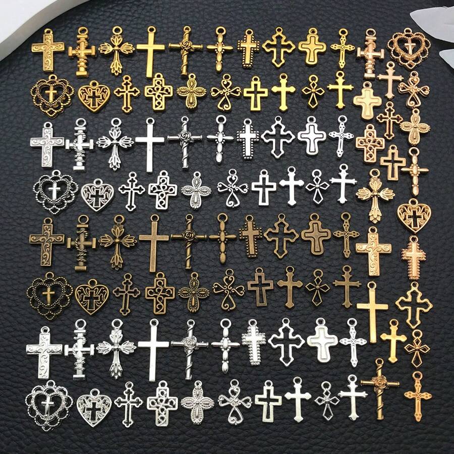 20/100pcs Vintage Alloy Assorted Bulk Cross Charm Hollow Cross Pendant For DIY Bracelet Necklace Earrings Handmade Accessories