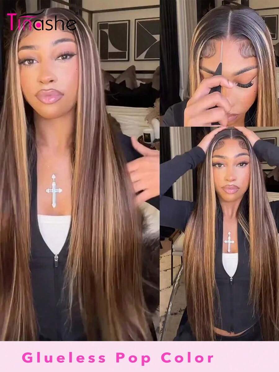 Tinashe Hair 6x5 Wear&Go Glueless Highlight Straight Human Hair Wig Piano Color Pre Plucked Bleach Knots Pre-Cut Transparent Lace Closure Wigs 180% Density