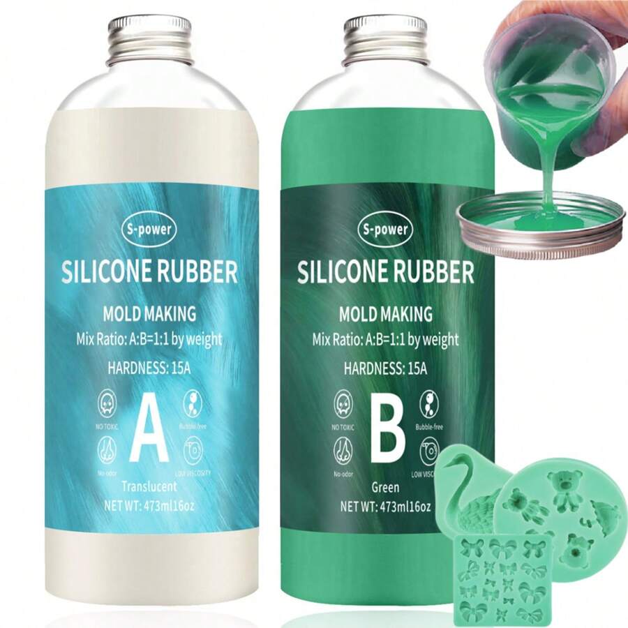 32oz/16.9oz Liquid Silicone Rubber - Easy To Use Silicone Rubber For Diy Crafts, And Flexible Molding Material, Perfect For Handmade Candles, Soaps, Resin Project Making Christmas Halloween Molds And Diy Resin Molds (Green) 15A