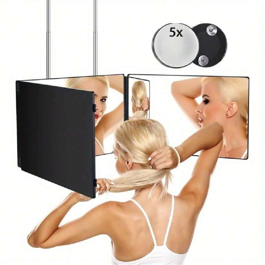 3 Way Mirror For Hair Cutting, Trifold 360° Mirror For Self Haircuts Shaving, Retractable Hanging Makeup Mirror With 10x Magnification Mirror, Portable Makeup Mirror