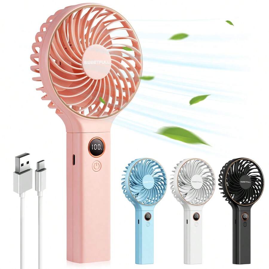 1pc Mini Portable Fan, Handheld Fan Personal Mini Fan USB Rechargeable,90° Foldable Battery Operated Mini Fan With LED Display, Desk Fan Working Time For Office Bedroom Outdoor Travel Camping Back To School Supplies