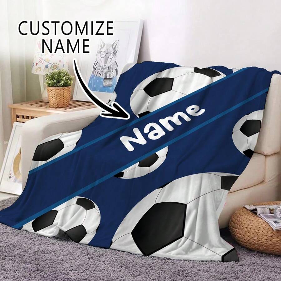 1pc Personalized Football Themed Flannel Blanket, Customized Soft And Warm Throw Blanket For Sofa, Bed, Office, Camping, Travel, A Memorable Gift For Family And Friends