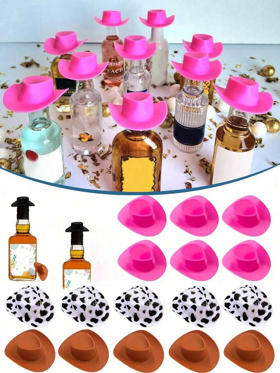 12Pcs/Set Mix Plastic Mini Western Cowboy Hats, Plastic Mini Party Hats, Party Favors, Party Accessories, Doll Decorations, Wine Bottle Decorations, Anniversary & Birthday & Wedding & Bachelor Party Favors Decorations, Mother Day Gift, Diy Crafts, Jewelry Making, Graduation Decorations 2025, Cute Multicolor Cap Accessories Collection