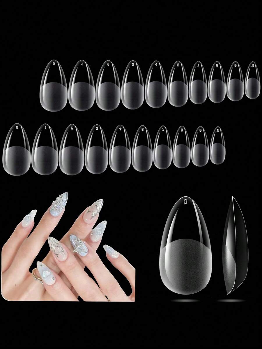 Short Almond Nail Tips - Half Matte Soft Gel Nail Tips No Filed, 24/120/240/600/720/1200PCS Preshaped Clear False Acrylic Gelly Tips For Soak Off Nail Extension DIY Nail Art Nails