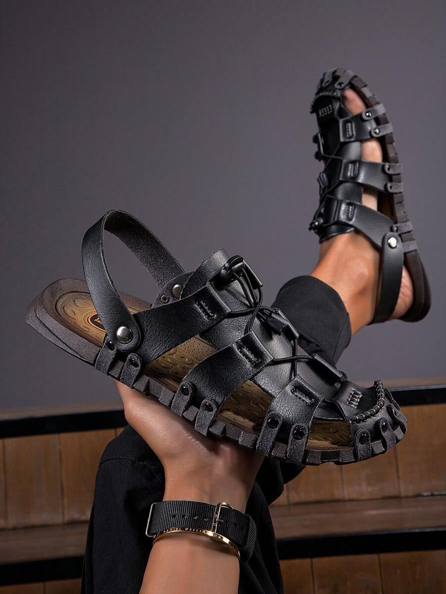 Lightweight Men Outdoor Breathable Sandals With Toe Protection, Beach Sandals, Drawstring Slip-On Slippers Dual-Use Shoes, Best Gift For Beach, Surfing, Outdoor Travel And Vacation. Note: This Sandal Runs Small, It Is Recommended To Choose One Size Up For A Better Fit.