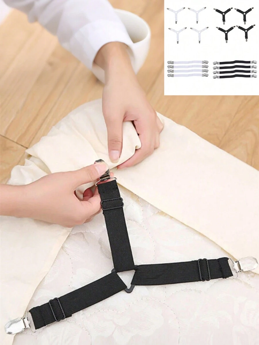 4 Pcs/Pack Bed Sheet Fasteners, Adjustable Elastic Triangle Metal Fixing Clip,Flexible Bedding Suspenders Gripper Holder Straps Clip,Curtains Sofa Mat Fixing Device,Practical Invisible Non-Slip Sheet Straps