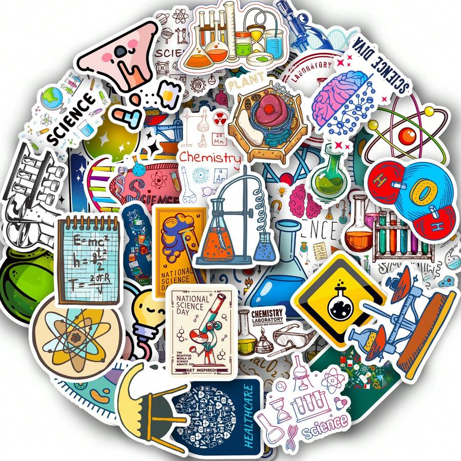 50Pcs Science Stickers, Funny Chemistry, Biology, Physics, Science Classroom Decor For Teachers Science Experiment Laboratory Stickers Decals For Laptop, Water Bottle, Notebook, Computer, Science Party Favors And Decoration, Creative Stickers Bulk For Teens Adults, Back To School, Vision Board Supplies