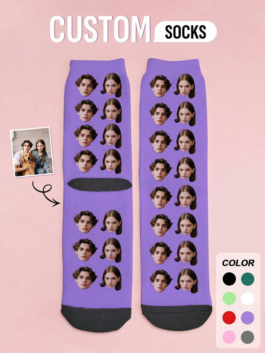 1 Pair Custom Socks, Custom Photo Sock, Custom Printed Socks, Personalized Funny Face Socks, Anniversary Gift, Valentine Gift, Birthday Gift, Wedding Gift, Mother's Day Gift, Father's Day Gift, Best Friend Gift, Gift For Mom/Dad, Gift For Girlfriend/Boyfriend, Gift For Her/Him