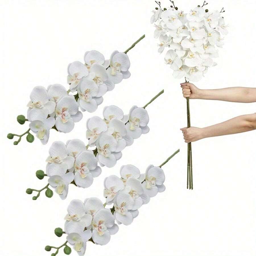 3pcs Set Of 27" White Orchid Artificial Flowers - Real Touch Silk Fake Orchids With Long Stems For Wedding & Home Decor, Perfect For Tabletop Display Gifts Birthday Graduation