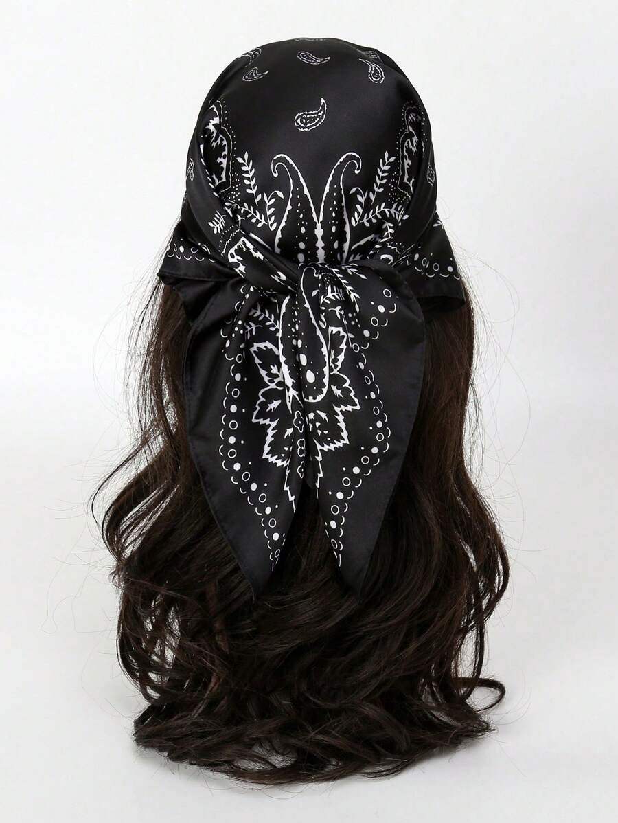 1pc Women Bandana Style Paisley Print Silky Square Scarf Head Wrap Hair Accessory, Suitable For Daily Use For Dress