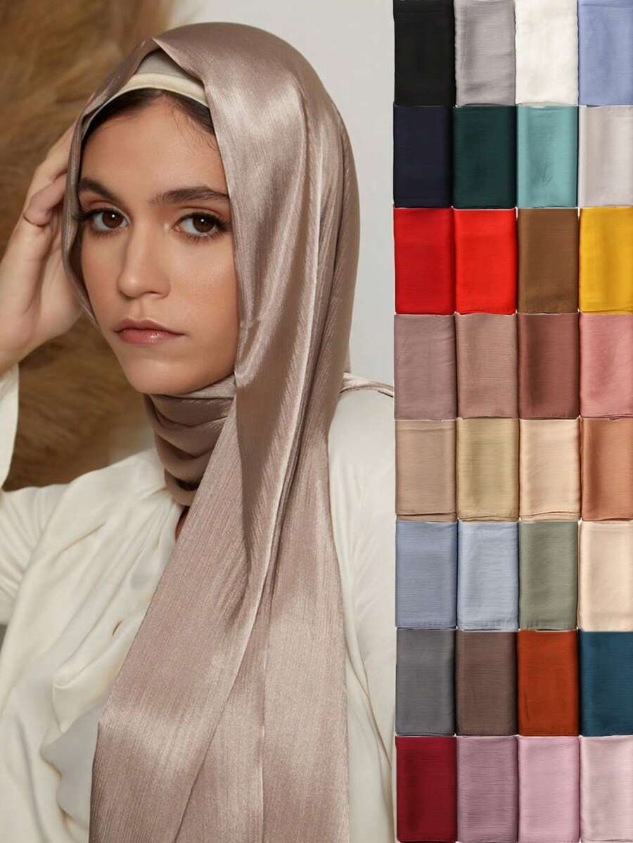 1pc Women's Solid Color Faux Pearl Satin Scarf, Comfortable Silk-Like Long Wrap Shawl, Versatile Bandana Headscarf, Casual Headwrap, Real Silk-Feel For Jalabiyas For Dress