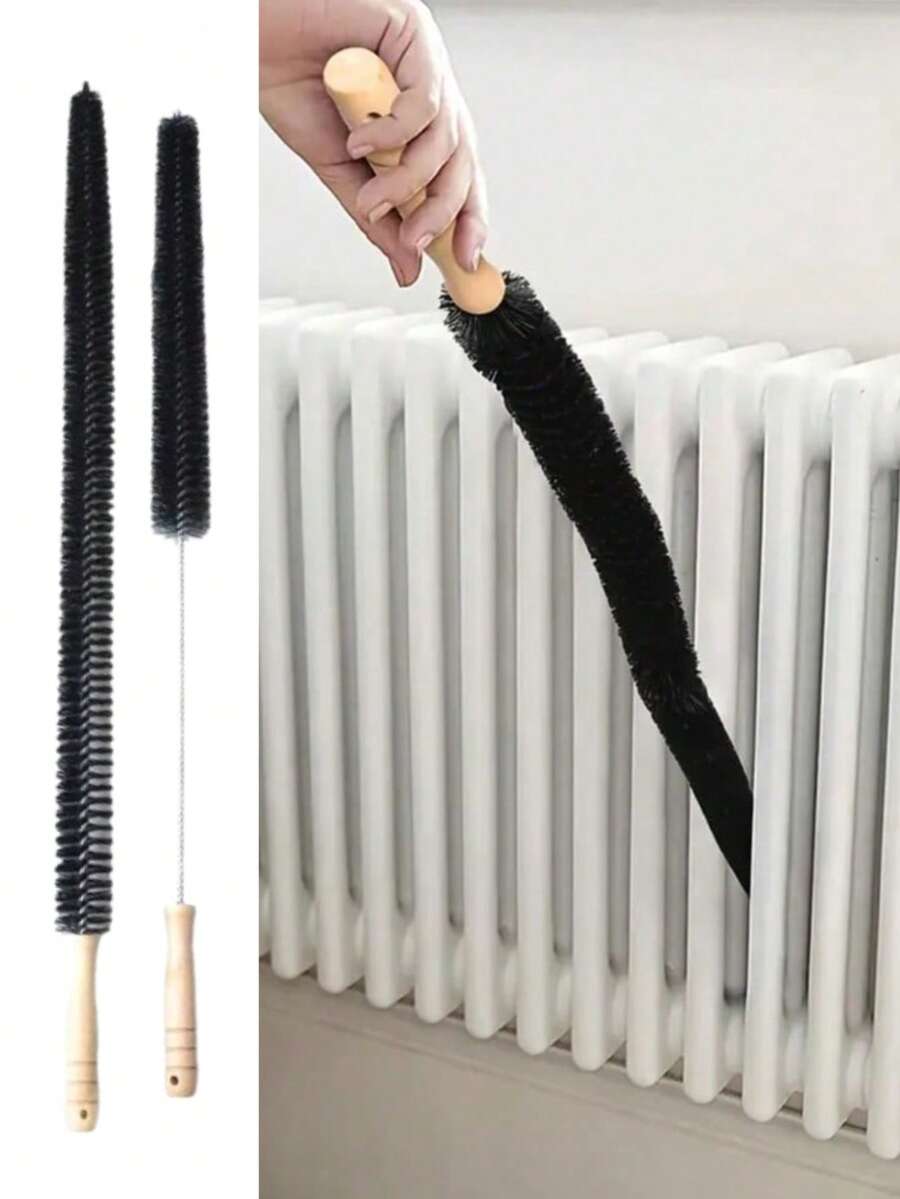 2pcs Multi-Functional Long Handle Radiator Cleaning Brush Set, Reusable Soft Bristle Brush With Handle - Dryer Vent Cleaner, Manual Scrub Brush, Long Flexible Crevice Brush And Washing Machine Brush