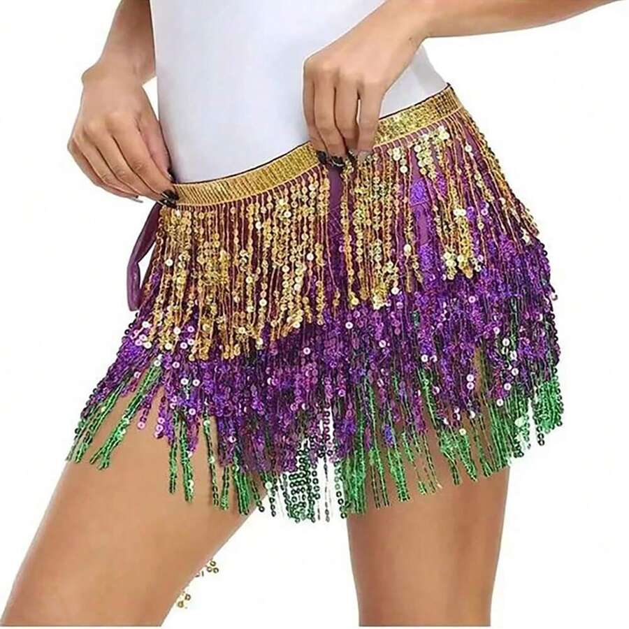 Women's Belly Dance Waist Chain Sequined Tassel Skirt Hip Scarf Dance Hip Belt Latin Dance Hula Dance Hip Scarf